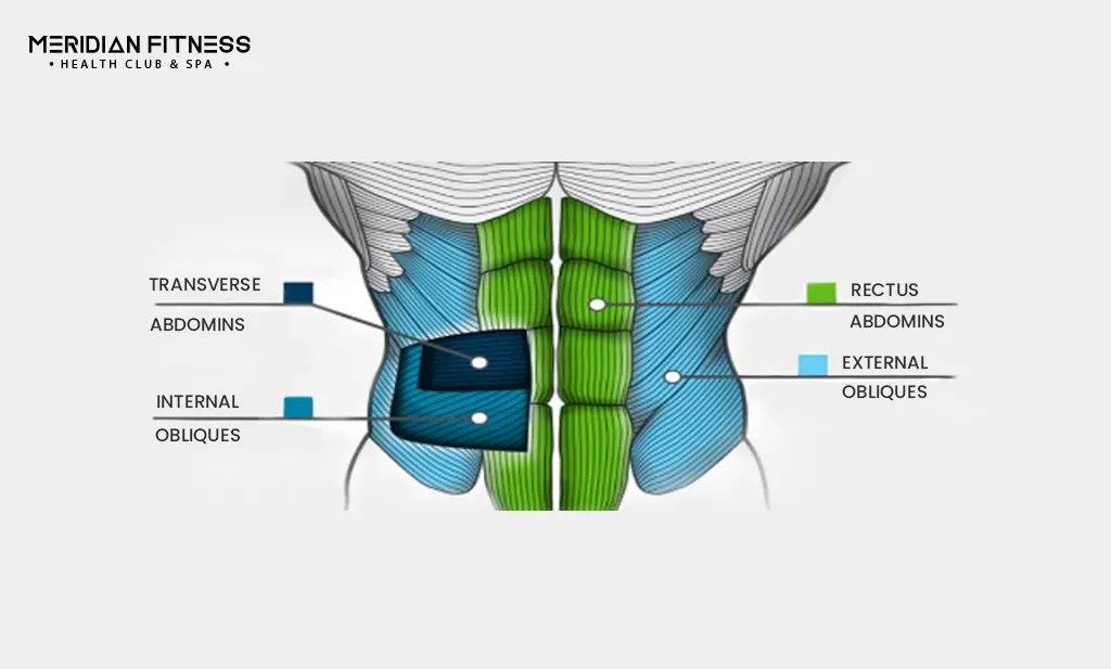 Ab workout exercises engage the four abdominal muscles: rectus, internal oblique, external oblique, and transverse abdominis. There is confusion, though sometimes people confuse the abs workout with the core workout. However, they are different! Core workouts engage the whole midsection back and front, while ab workout exercises only focus on the abdominal muscles (front).